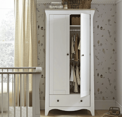 Ample Storage: The Clara Wardrobe offers generous storage with 2 removable hanging rails for clothing, which can be adjusted as your baby grows. A deep storage drawer provides extra space for blankets, bedding, or shoes, while the shelving allows for the perfect organisation of other baby essentials.