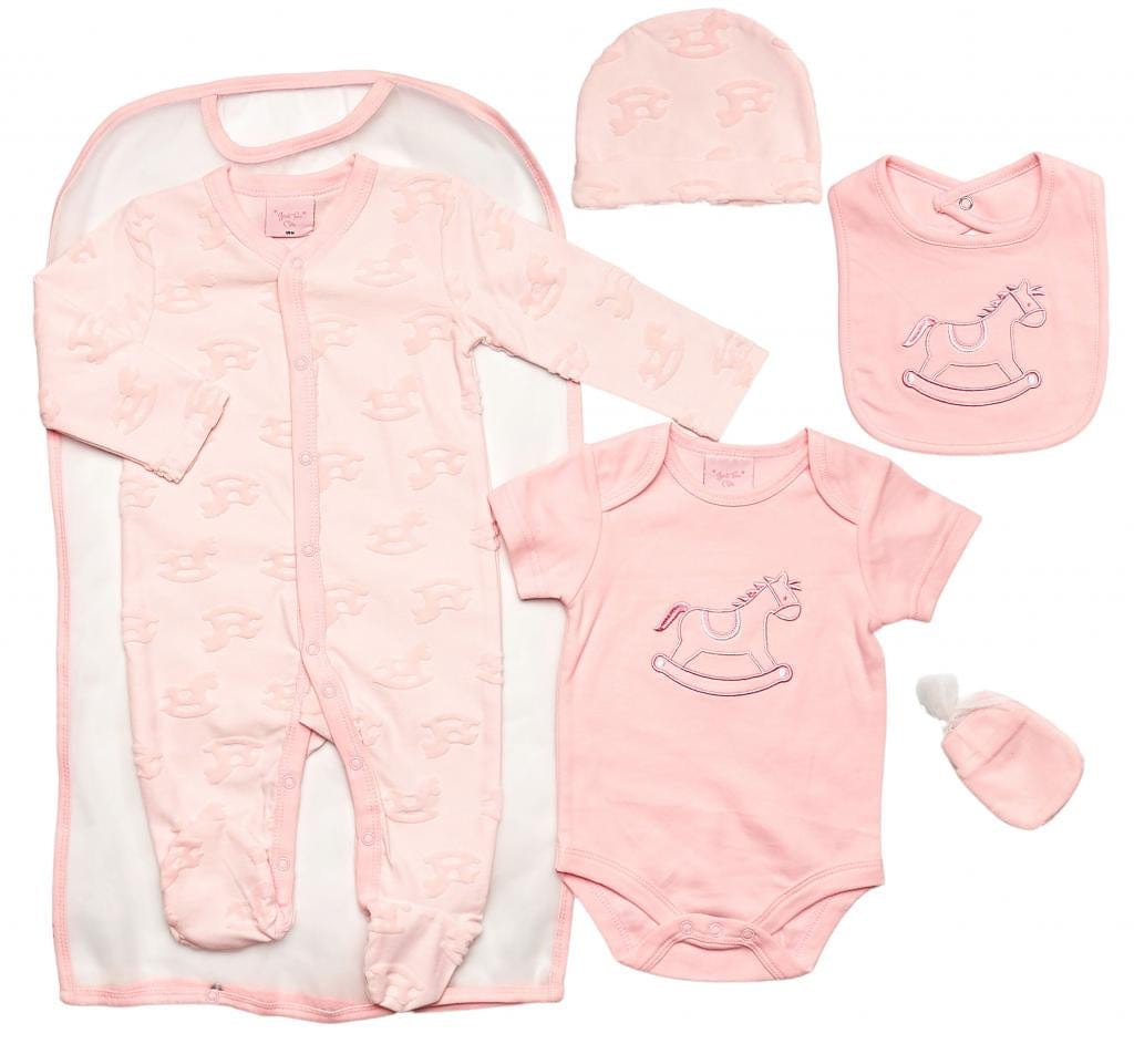 Baby Girls' Pink 5-Piece Layette Set – Rocking Horse Design
