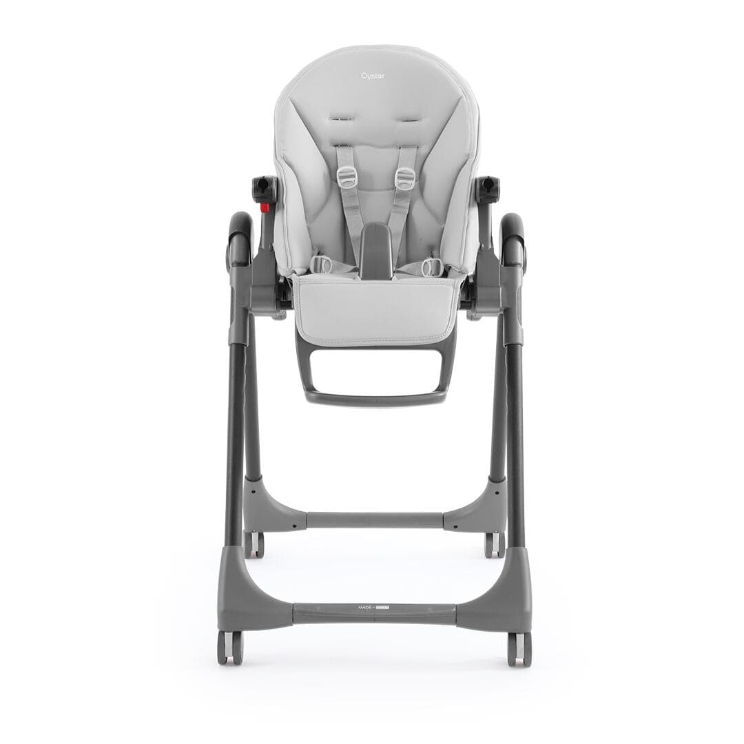 Introducing the Oyster Bistro Highchair Ice, a sophisticated addition to mealtime moments. Crafted in Italy for Babystyle, this high-quality highchair, available in Ice, Black, and White on a sleek black frame, brings a touch of modern elegance to your child's dining experience.