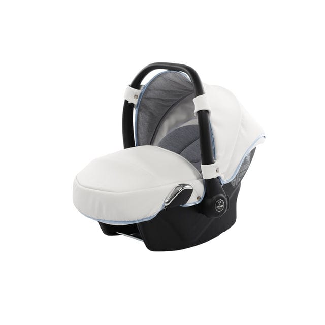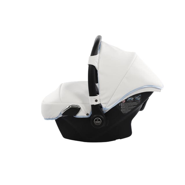 The car seat is compatible with all Junama frames using adaptors (adaptors are included). The ergonomic handle makes it easy to carry after detaching it from the chassis. The car seat has been equipped with an advanced side protection system, which reduces stress and optimises the child's body position in the event of side impact. This has been achieved by using the innovative EPP material in the headrest. The car seat uses memory foam, covered with soft upholstery, offering the child maximum comfort, as well as ensuring safe, correct positioning in the seat. The Junama 0+ car seat colour options perfectly mix and match to complement your Junama pram.