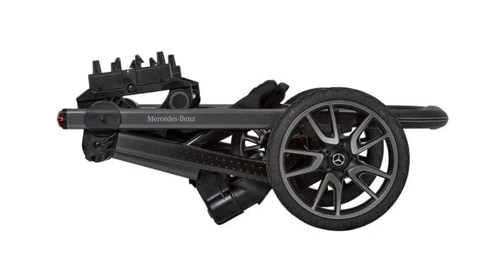 The premium folding carrycot clicks effortlessly onto the chassis and includes a reclining mattress for enhanced newborn comfort. Stylish AMG-inspired wheels, no-puncture tyres, and adjustable suspension provide a smooth ride on any terrain.