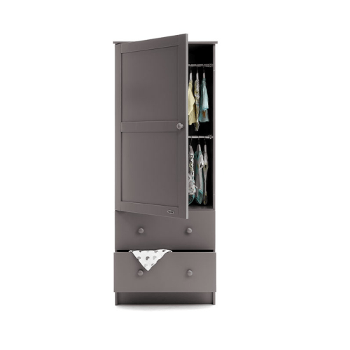 This elegant piece features a spacious cupboard with two internal hanging rails, providing ample space for your little one's tiny clothes and accessories. Additionally, two deep and spacious drawers, each with a 29L capacity, offer versatile storage solutions to keep everything neatly organized.