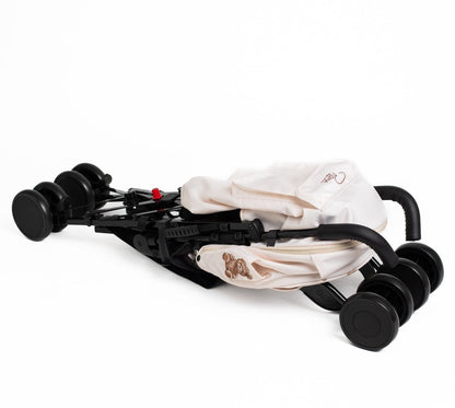 The Roma Star pushchair is a perfect blend of classic design and modern features, with a charming teddy bear pattern that kids and parents will love. This lightweight stroller is ideal for holidays, small spaces, or compact car boots, making it a versatile choice for busy families.