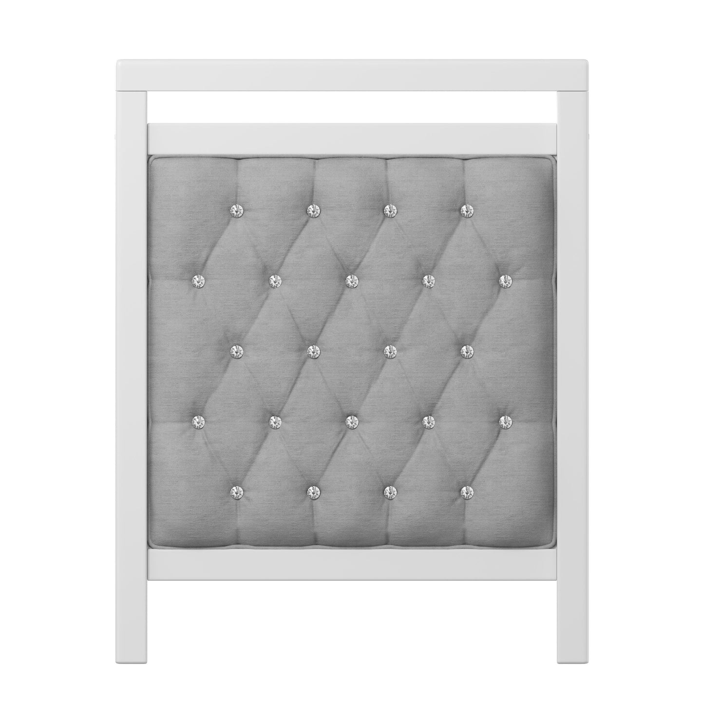 The cot bed, boasting a classic white finish and adorned with diamante tufted upholstery, makes a striking statement. Its water-resistant and wipe-clean velvet fabric ensures effortless maintenance, marrying style with practicality. With a solid wood structure of 5cm thickness, durability and longevity are guaranteed, promising years of reliable use.