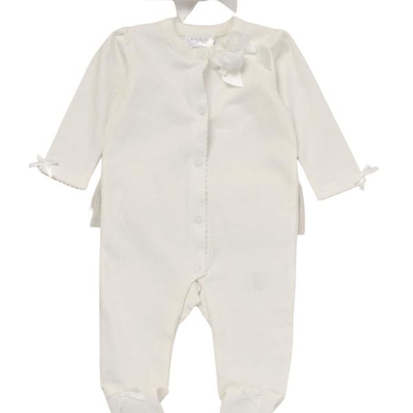 Delicate bow and flower detailing add a gentle touch of sweetness, while handy poppers at the back and legs ensure quick and easy changes. Complete with a complimentary matching headband, this set is perfect for newborn photos, special occasions, or simply adding a little magic to everyday moments.