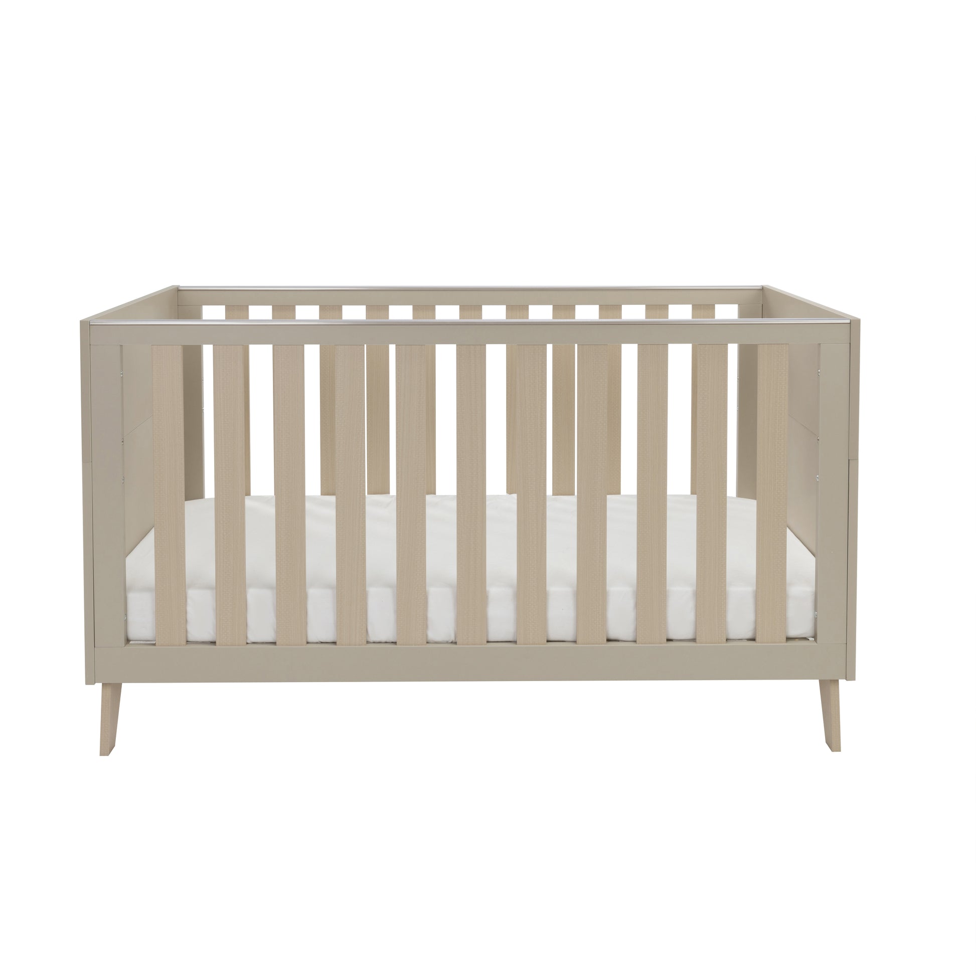 Finished in a soft, modern cashmere tone, this elegant cot bed brings a warm, neutral aesthetic to your nursery while offering everything parents need from birth through to toddler years.