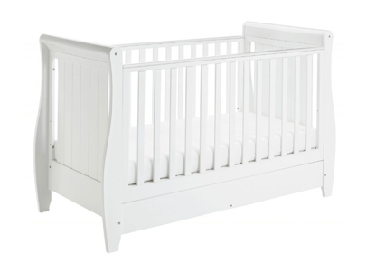 Stella is a full size cot bed and requires a 140x70cm mattress, it retains our design of classic curves with solid pine, also features every convenience function of nursery bed. Beautiful style and versatility that compliant either traditional or contemporary scheme.