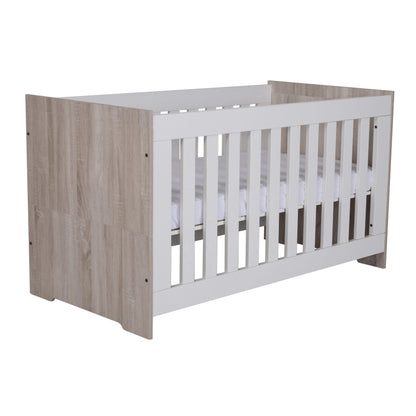 Introducing Babystyle's Verona Cot bed, a sophisticated addition to our Charnwood collection. This ensemble includes a versatile cot bed designed to seamlessly adapt and grow with your child. The Verona set, adorned with a chic combination of bright white and light ash finishes, effortlessly elevates any nursery with a timeless sense of style.