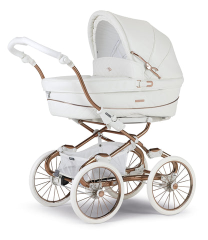 Experience the Bébécar White Rose Stylo Class Pram & Pushchair — where timeless elegance meets modern luxury in every detail.