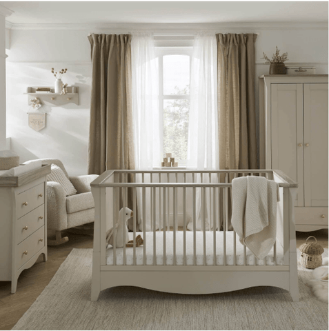 Elevate your nursery with the Clara 3-Piece Cashmere Nursery Furniture Set, a blend of luxury and practicality that transforms your baby’s room into a haven of warmth and elegance. This beautifully designed set combines a chic cashmere finish with brushed gold handles, offering a timeless and versatile style that is perfect for any nursery, regardless of gender. The Clara set includes a cot bed, dresser changer and a wardrobe, each crafted with meticulous attention to detail and functionality.
