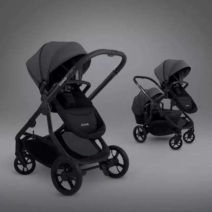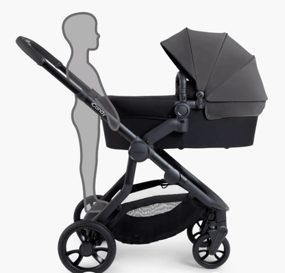 But functionality doesn't mean sacrificing style. The iCandy Orange 4 boasts a sophisticated aesthetic, with a luscious interchangeable canopy available in five trend-led colours including Fossil, all set against a sleek Jet Black chassis.