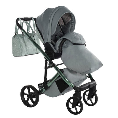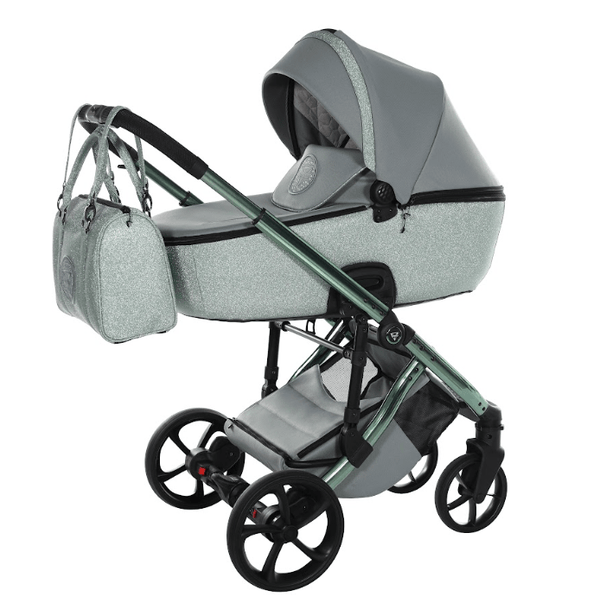 With over 30 years of experience, Junama has been crafting exclusive prams in Europe, merging style with functionality. The Junama Glitter Mint Travel System features a unique diamond carrycot design, inspired by the elegance of a jewel. This pram is not only a visual statement but also prioritizes safety and comfort, incorporating innovative systems to enhance your travel experience with your little one.