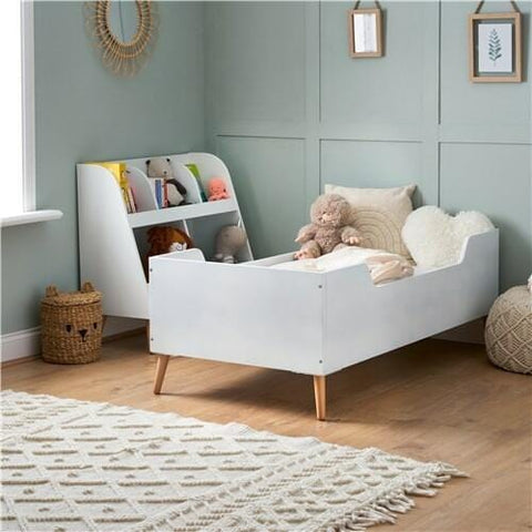 Introducing the Obaby Maya Toddler Bed, a beautiful new addition to the award-winning Maya Collection. Inspired by Scandinavian design, this bed combines clean lines, a smooth white finish, and warm natural wood tones to create a calm and contemporary space for your growing child.
