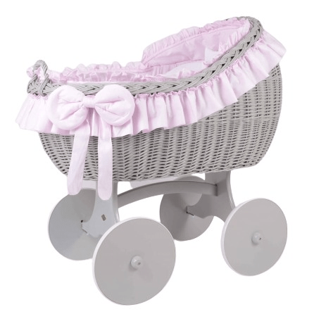 MJ Marks Bianca Pink and Grey Wicker Crib with Bedding