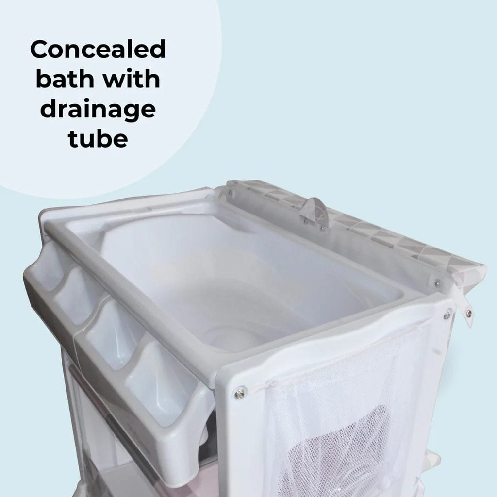 Four additional plastic storage compartments mean you’ll never run out of room for your little ones bath time essentials.