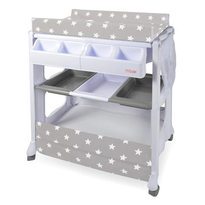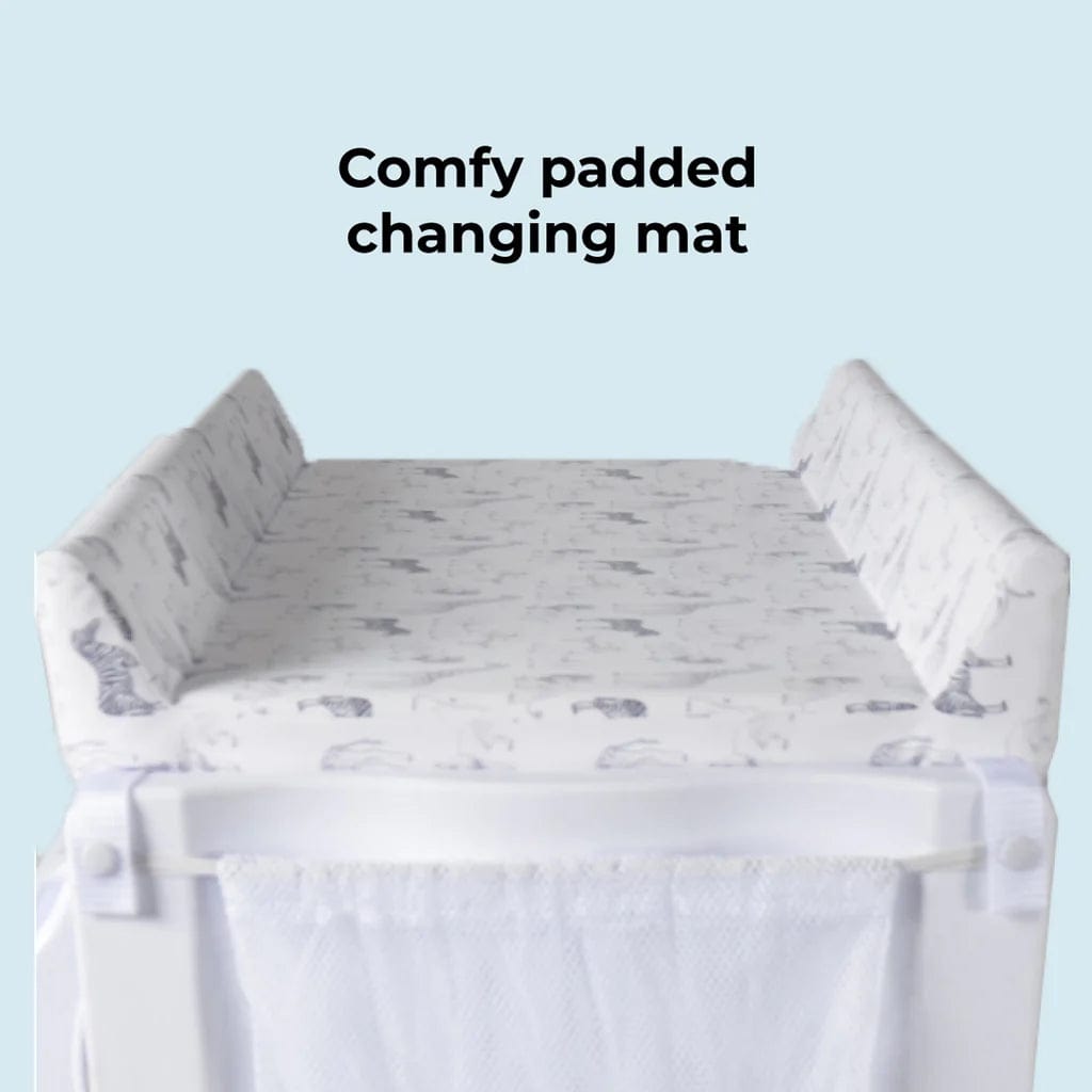 This safari print changer unit is easy to assemble and looks gorgeous. With a concealed bath under the changing mat and handy drainage tube bath times for your little one will be as easy as pie! The changing unit also has loads of handy storage space underneath for all your nursery essentials and lots of trays to keep nappies, wipes and bubble bath in easy reach.