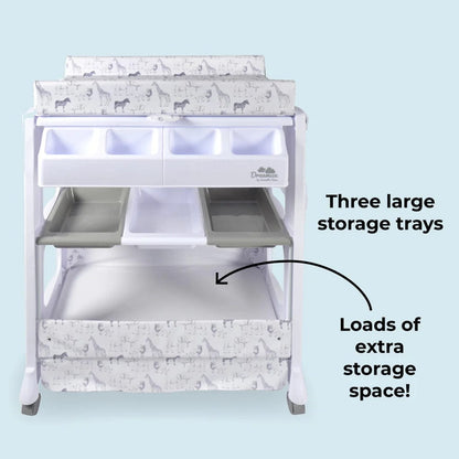 Three large storage trays to keep nappies, wipes and towels in easy reach.