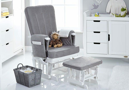 OBaby Deluxe Reclining Glider Nursery Chair & Stool - White & grey