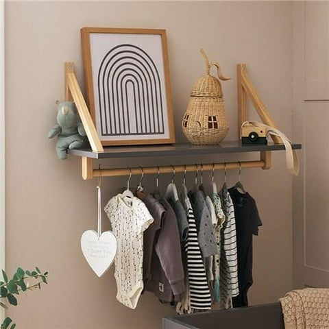 The Obaby Maya Nursery Shelf – Slate Grey & Natural Wood brings together Scandinavian simplicity and modern practicality. Designed to make nursery organisation effortless while maintaining a sleek aesthetic, it’s the ideal accent for any contemporary home.