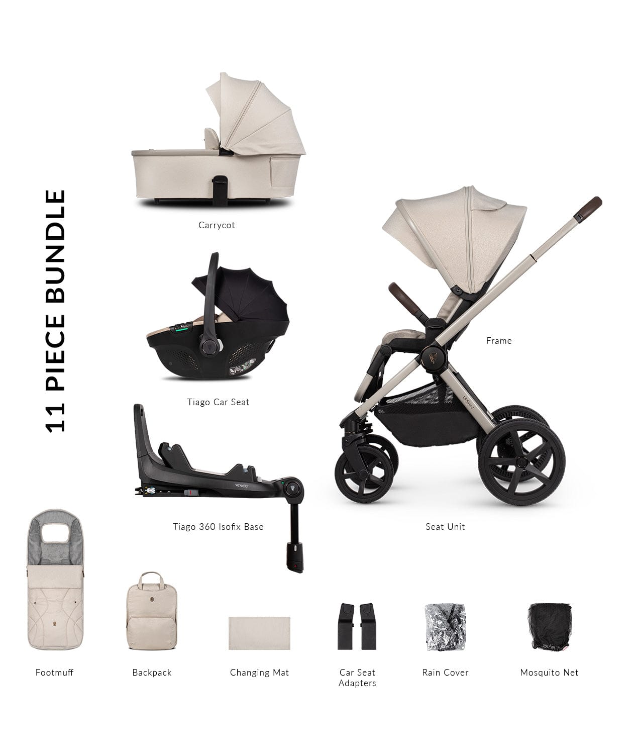 Venicci Upline 2 Stone Beige Pram 3 in 1 + 360 Tiago Beige Isofix Bundle
