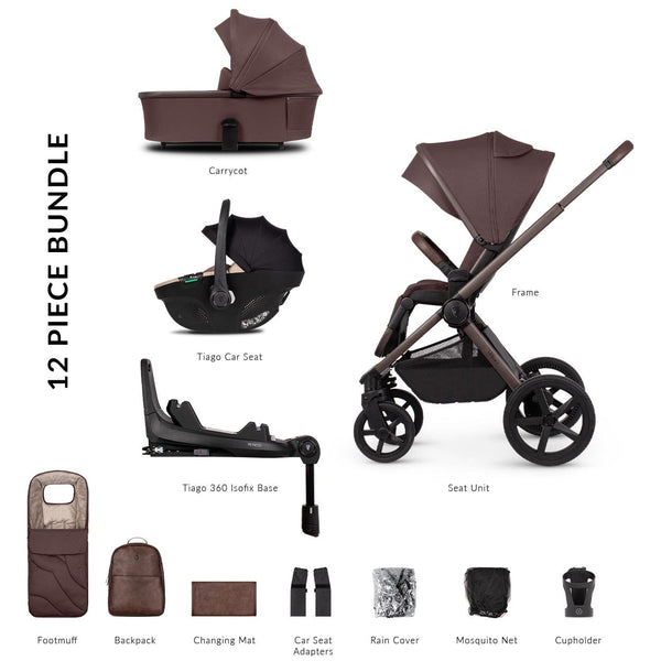 All-in-One Travel System: Includes carrycot, reversible seat unit, Tiago i-Size car seat + 360° Isofix base.